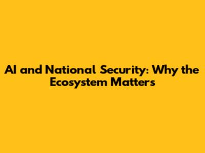 AI And National Security: Why The Ecosystem Matters