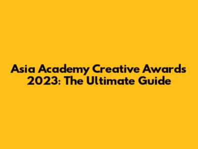 Asia Academy Creative Awards 2023: Complete Guide