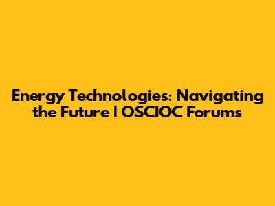 Energy Technologies: Navigating The Future | OSCIOC Forums