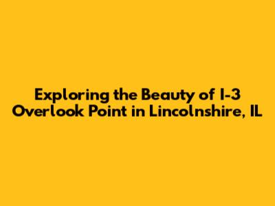 Hey guys, let's dive into something pretty cool today: I-3 Overlook Point in Lincolnshire, IL. This spot is a hidden gem, offering fantastic views and a chance to chill out. Whether you're a local or just passing through, understanding what makes this place special can really enhance your experience. We're going to break down everything from the location and what you can see to some insider tips on making the most of your visit. So, buckle up, and let's explore this scenic spot together!