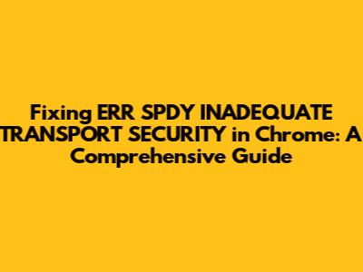 Hey guys! Ever stumble upon the dreaded ERR_SPDY_INADEQUATE_TRANSPORT_SECURITY error in Google Chrome? It's a real head-scratcher, I know. This error essentially means that Chrome is having a tough time establishing a secure connection to a website. It's usually related to issues with the website's SSL/TLS certificate or the way it's configured. Don't worry, though! We'll break down the issue and provide some handy solutions to get you back on track. We'll explore the causes, and how to troubleshoot ERR_SPDY_INADEQUATE_TRANSPORT_SECURITY and get your browsing experience back on track.