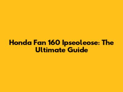 Honda Fan 160 Ipseoleose: Ultimate Guide & Repair Tips