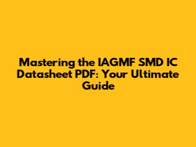 Why Are IAGMF SMD IC Datasheet PDFs So Crucial?