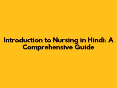 Introduction To Nursing In Hindi: A Comprehensive Guide