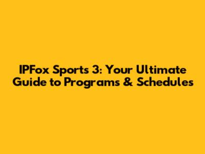 IPFox Sports 3: Your Ultimate Guide To Programs & Schedules