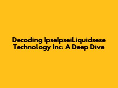 Hey guys, let's dive into something a bit different today: IpseIpseiLiquidsese Technology Inc. Now, I know the name might sound a little… out there. But trust me, there's a world of cool tech innovation hidden behind it. This article is your ultimate guide, breaking down everything from their core technologies to their potential impact on the future. We're going to explore what makes this company tick, what problems they're trying to solve, and why you should care. Buckle up, because we're about to embark on a journey into the fascinating realm of IpseIpseiLiquidsese. This company is a technological powerhouse, constantly pushing the boundaries of what's possible. Their innovative approach and dedication to solving complex challenges have positioned them as a leader in their field. We will examine the company's pioneering work and its groundbreaking advancements, offering insights into their vision for the future. IpseIpseiLiquidsese has a unique perspective on the world of technology, with a focus on innovation and pushing the limits of what's achievable. Their team is made up of brilliant minds who are passionate about their work and dedicated to making a real difference. We will explore their core values, their mission, and their commitment to excellence. Their work has the potential to reshape industries and transform how we live, work, and interact with the world around us. So, join us as we embark on this exciting exploration of the innovative world of IpseIpseiLiquidsese.