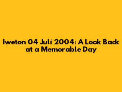Hey guys! Let's take a trip down memory lane and talk about Iweton 04 Juli 2004. For those of you who might be scratching your heads, this date holds a special significance, and we're going to dive deep into what made that day so unique. We'll explore the events, the atmosphere, and the lasting impact of that specific date. Get ready to reminisce, because we're about to uncover some fascinating details. This isn't just about a date; it's about the stories, the people, and the moments that shaped a specific time. So, buckle up and prepare to go back in time! We'll explore everything from the major events that may have taken place to the more personal, everyday experiences that contributed to the overall feel of the day. It's like a time capsule, and we're about to open it together. Let's get started and see what treasures we can find within this day! The purpose of this trip is to understand and appreciate the significance of this date and its associated events. This will involve an examination of the historical, social, and cultural contexts that defined the time. We'll analyze news reports, personal accounts, and any available documentation to construct a comprehensive image of the day. We'll attempt to paint a picture of how the world looked and felt on Iweton 04 Juli 2004, and what made it a day worth remembering. We'll make sure to note down any significant world events, cultural trends, or technological advancements that might have impacted the day. This in-depth analysis will offer us a unique perspective on the past, helping us appreciate the changes that have taken place and the enduring values that have remained constant. So, whether you have a personal connection to this day or are simply curious to learn more, you're in for an interesting journey.