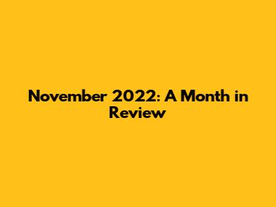 November 2022: A Month In Review