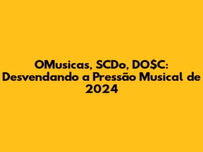 OMusicas , sempre atenta às novidades e às tendências do mundo da música, terá um papel fundamental na cobertura da cena musical em 2024. A plataforma acompanhará de perto a trajetória de artistas como SCDo e DO$C, além de outros talentos que estão surgindo no cenário. A pressão para fornecer informações relevantes e atualizadas é grande, mas OMusicas está preparada para oferecer conteúdo de qualidade aos seus usuários. A plataforma fará entrevistas exclusivas, análises de álbuns, cobertura de shows e eventos, e muito mais. O objetivo é informar, entreter e conectar os fãs com seus artistas favoritos. A pressão por se manter relevante e por oferecer conteúdo original é constante, mas OMusicas investe em jornalistas e em colaboradores que entendem a fundo a cena musical. A plataforma também irá promover o diálogo entre artistas, produtores e fãs, criando um espaço de interação e de troca de ideias. A pressão por ser um ponto de encontro para os amantes da música é grande, mas OMusicas se esforça para criar um ambiente acolhedor e engajador. Em 2024, OMusicas será um guia essencial para quem deseja se manter atualizado sobre o que está acontecendo no mundo da música. A plataforma acompanhará os artistas, as músicas e as tendências, oferecendo sempre o melhor conteúdo para seus usuários. A pressão para se manter na vanguarda da informação musical é grande, mas OMusicas está pronta para mais um ano de sucesso. Acompanhe OMusicas e não perca nada do que acontece na cena musical de 2024.