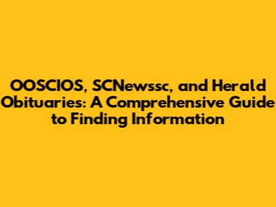OOSCIOS, SCNewssc, And Herald Obituaries: Your Comprehensive Guide