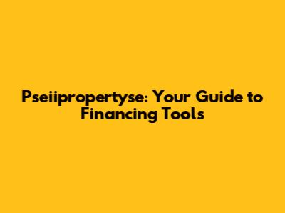 Pseiipropertyse: Your Guide To Financing Tools