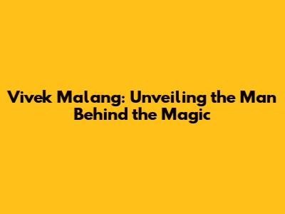 Vivek Malang: Unveiling The Man Behind The Magic